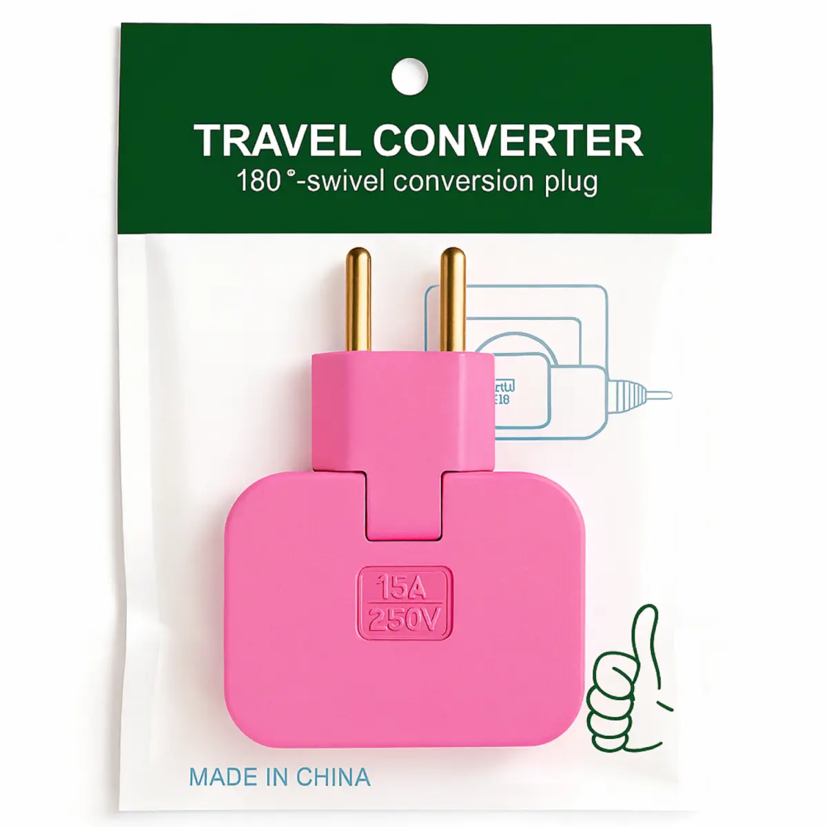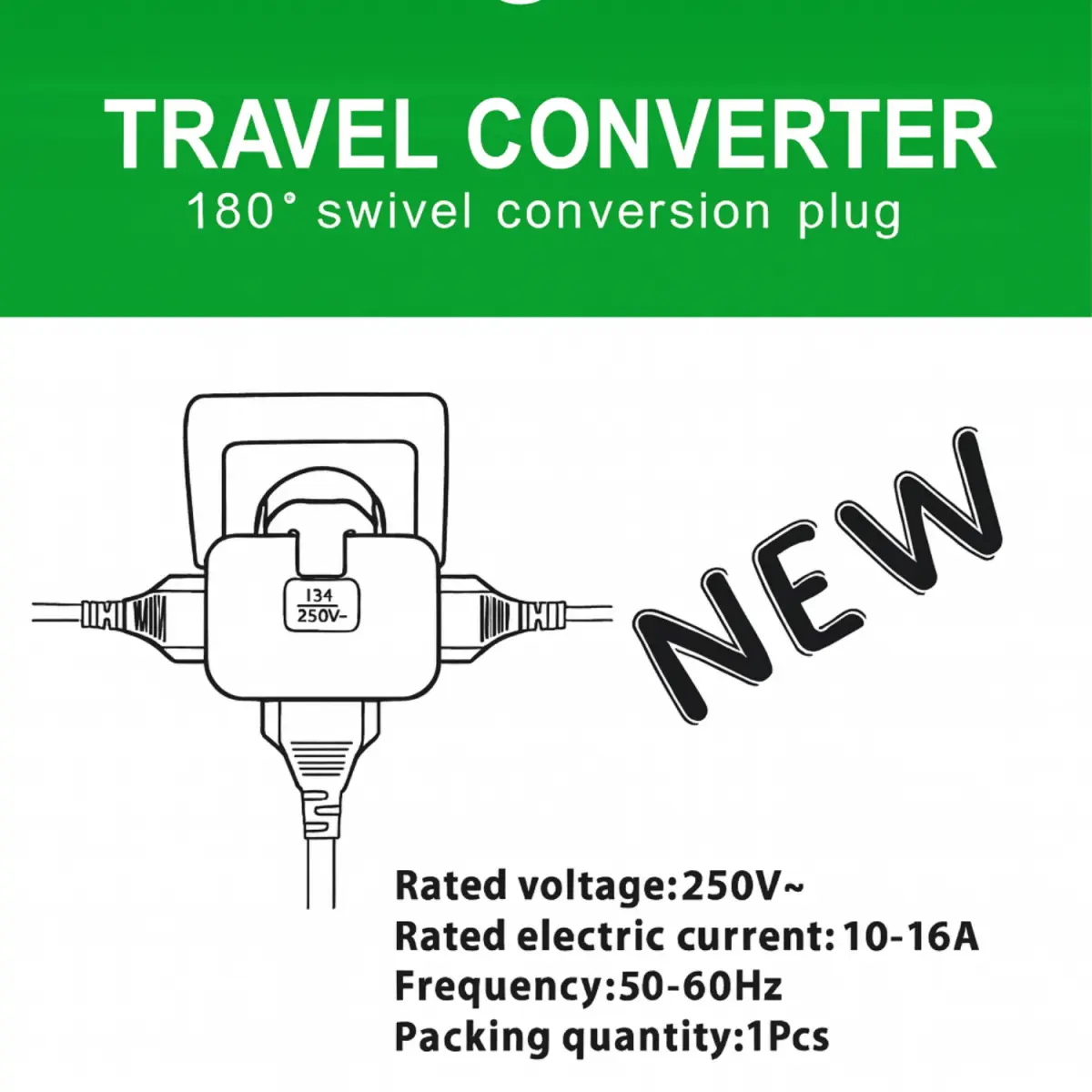 travel converter, rotary plug adapter, 180 degree swivel plug, universal travel plug, european plug converter, american plug adapter, flat pin plug adapter, power converter 15a, 250v travel adapter, compact travel plug, universal socket adapter, multipurpose power adapter