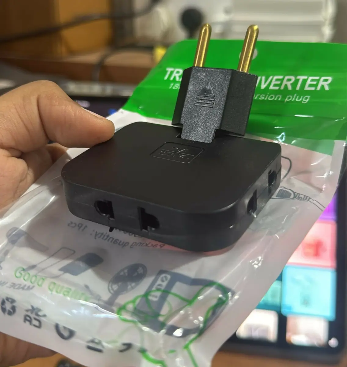 Apne daily aur travel power needs ko easy banayein is 180° Rotary Travel Plug Converter ke saath. Iska rotatable swivel head aapko tight spaces me bhi flexible use ka option deta hai, bina dusre sockets ko block kiye.