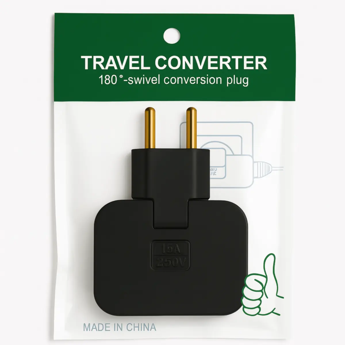 travel plug adapter, swivel plug converter, universal plug adapter india, rotating plug adapter, eu to india adapter, us to india plug, 15a plug converter, compact travel adapter, multi plug socket, power converter plug