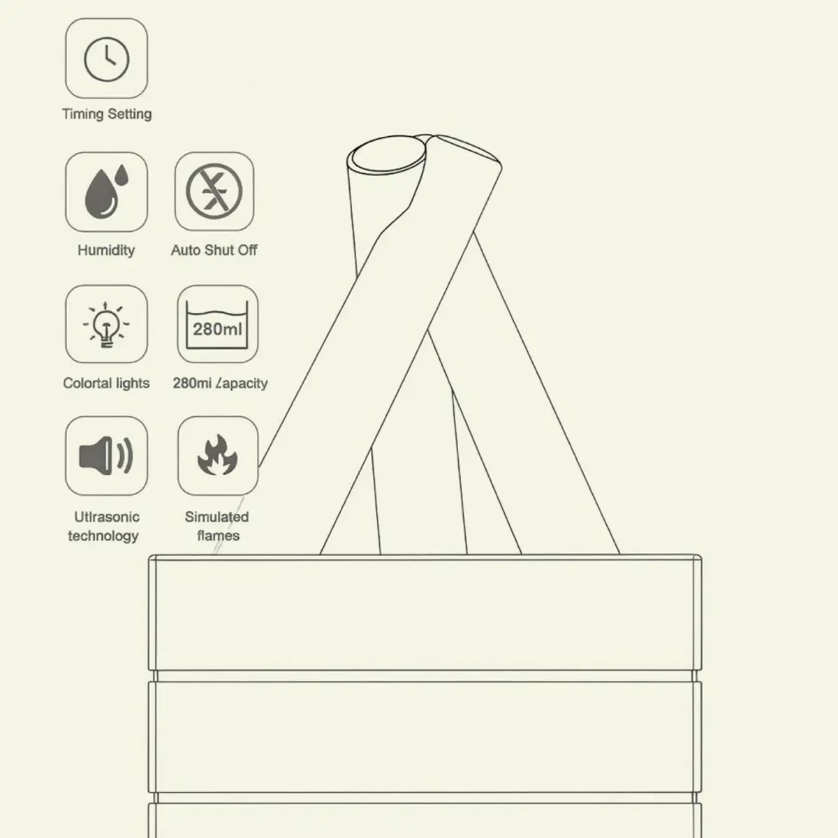 campfire aroma diffuser, flame humidifier, LED flame diffuser, ultrasonic humidifier, essential oil diffuser, bedroom diffuser, living room humidifier, decorative diffuser, flame mist diffuser, aroma diffuser with remote, luxury diffuser lamp, home décor diffuser, 280ml diffuser