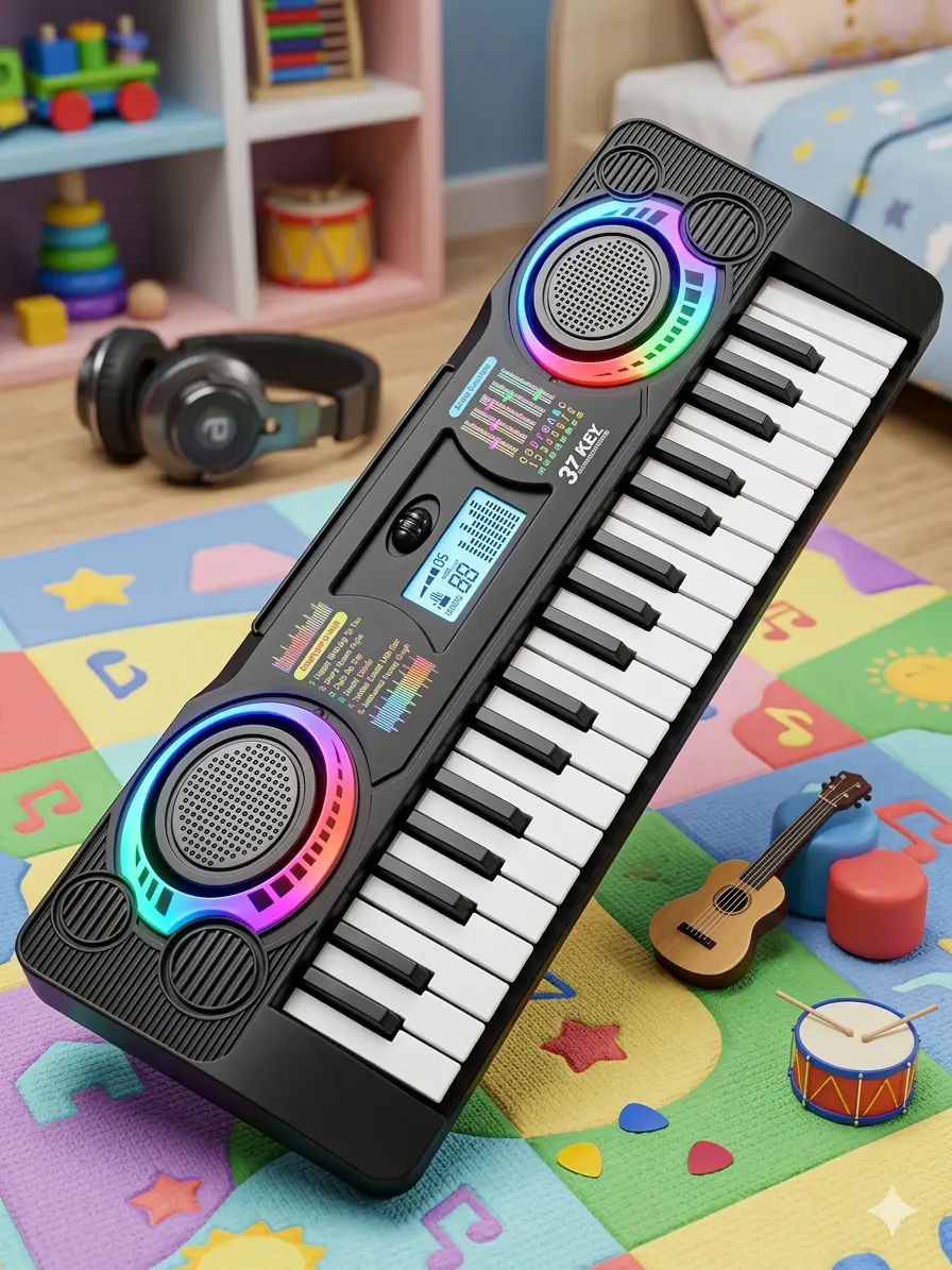 Introduce young learners to music with the Children's 37-Key Electronic Piano Toy. Designed for beginners, this lightweight keyboard features responsive keys, built-in speakers and engaging rhythm modes that transform playtime into a fun musical experience.The compact structure makes it perfect for bedrooms, classrooms or travel. This educational instrument helps develop creativity, rhythm awareness and early musical interest while keeping kids entertained.