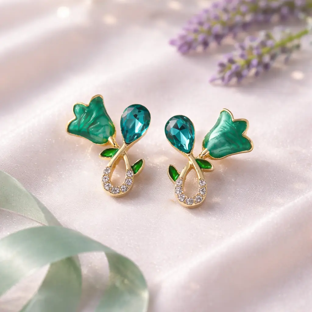 Bring a fresh and graceful charm to your look with these Green Floral Stud Earrings, thoughtfully designed to combine modern elegance with timeless beauty. The unique floral pattern paired with sparkling crystal stones creates a stunning and eye-catching effect.