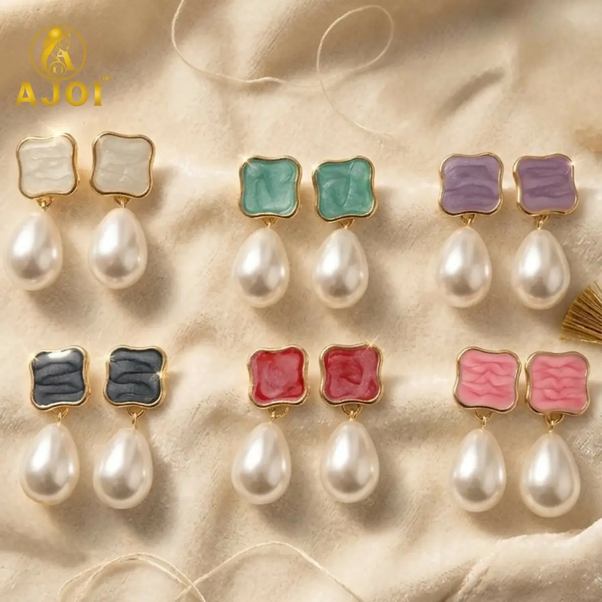 Add timeless elegance to your jewellery collection with these handcrafted pearl drop earrings, designed to bring a perfect blend of grace and modern charm. Featuring soft pastel enamel tops and lustrous teardrop pearls, these earrings enhance your look effortlessly.