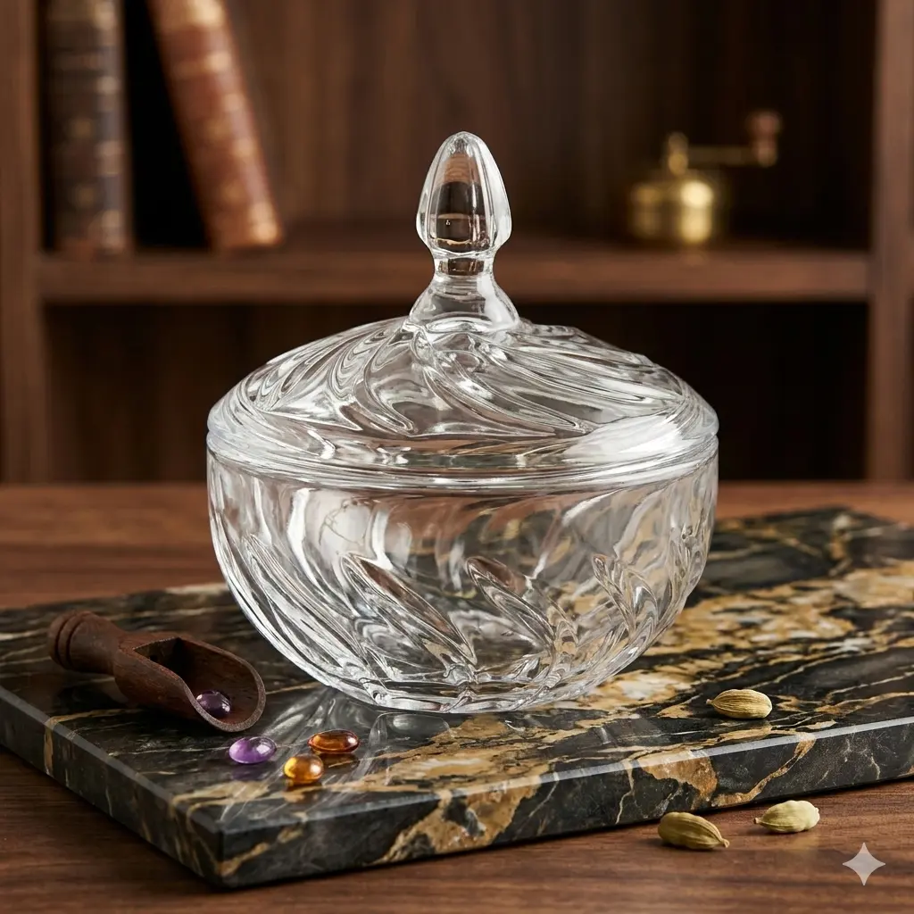 Is jar ko kisi **LED-lit shelf** ya **Windowsill** par rakhein. Jab suraj ki roshni iske swirl pattern se takrayegi, toh yeh poore kamre me ek sundar "Rainbow Pattern" banayega. Yeh sirf ek jar nahi, ek experience hai!
