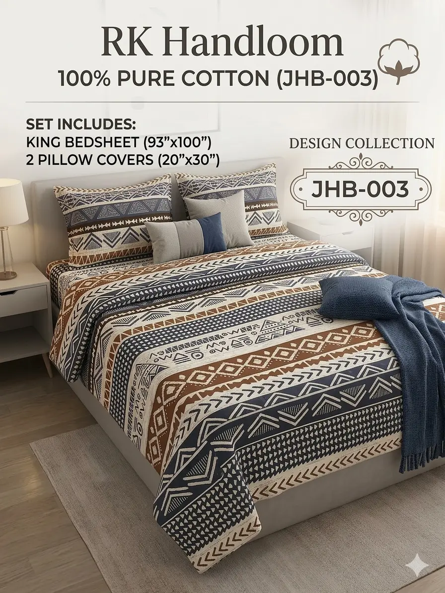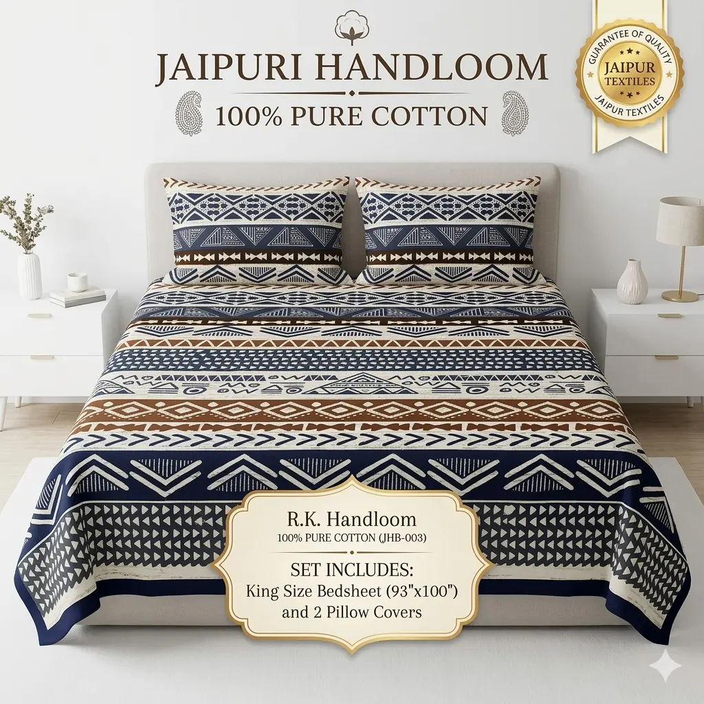 Upgrade your bedroom with this Premium Jaipuri Cotton Bedsheet made from100% pure breathable cotton. Featuring elegant ethnic prints, thisbedsheet offers luxury comfort, long-lasting colors, and soft skin-friendly fabric.Perfect for everyday use and ideal for all seasons.