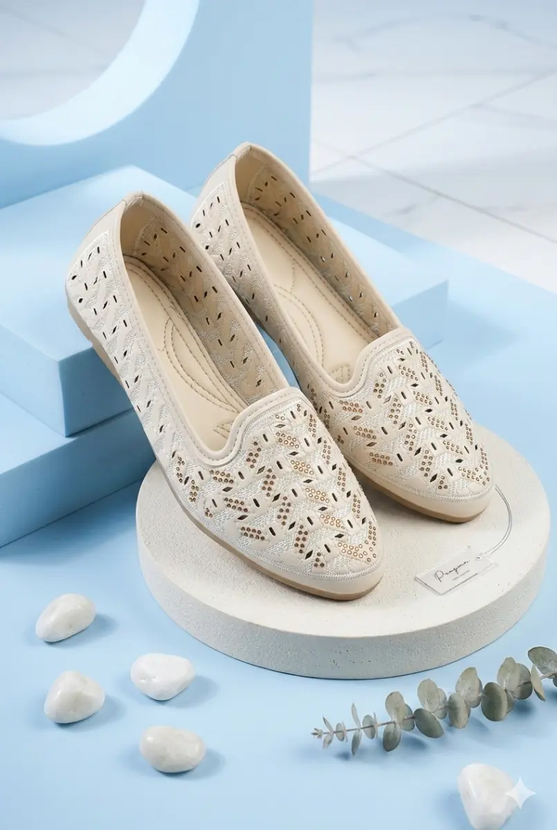 Apne footwear collection ko up-grade karein Elegant Soles ki in exquisite laser-cut bellies ke saath. Ye jootiyan na sirf dekhne mein khoobsurat hain, balki inhein pure din ke comfort ko dhyan mein rakh kar design kiya gaya hai. Chahe office ho, casual outing ya koi festive occasion—ye pair har outfit ke saath perfect lagta hai.