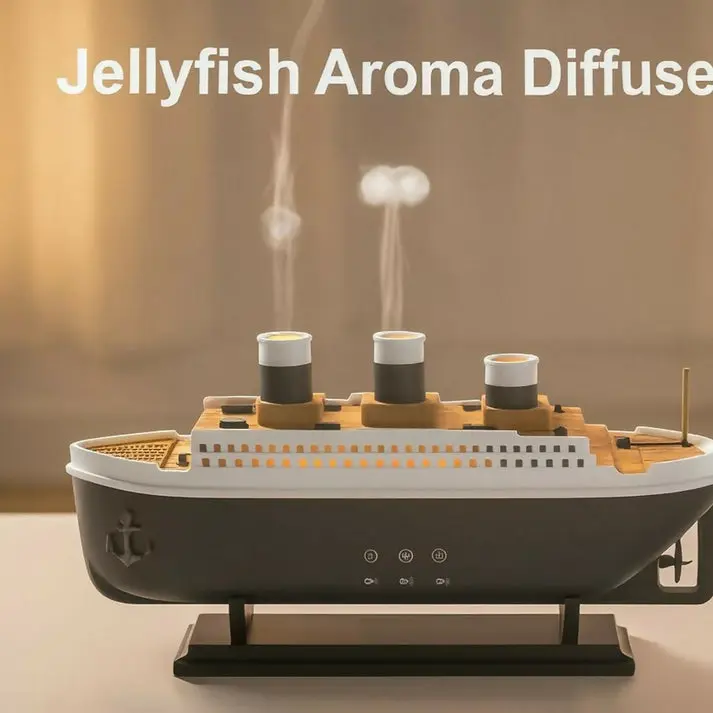 Bring the charm of the ocean into your space with this Ship Jellyfish Aroma Diffuser & Humidifier. Designed as a miniature steamship, it features three chimney-style mist outlets that release soft mist like smoke drifting from a real ship. Combined with soothing aroma diffusion and ambient lighting, it creates a calming, luxurious atmosphere perfect for relaxation, décor, and everyday comfort.