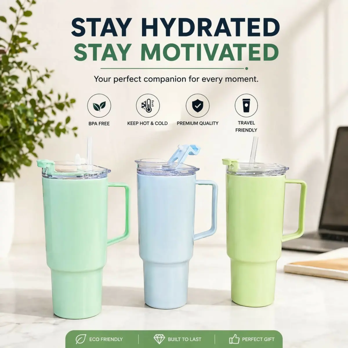 Iska premium insulated design aapke drinks ko ghanton tak garam ya thanda rakhta hai, jabki iska leak-proof lid aur strong handle ise travel-friendly banata hai.