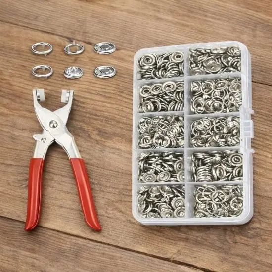 SEO Keywords: snap button kit, metal snap fasteners, sewing snap buttons, snap button tool kit, copper snap buttons, DIY sewing accessories, clothing fasteners kit, hand press snap tool, snap buttons for clothes, craft snap button set